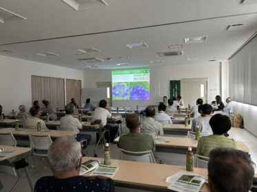 報告会は「ためん通信」にそって上半期の活動を報告し、後半の研修会では、農業普及センター花植木普及課の方に来て頂き、「アジサイの管理について」をテーマにお話をして頂きました。
